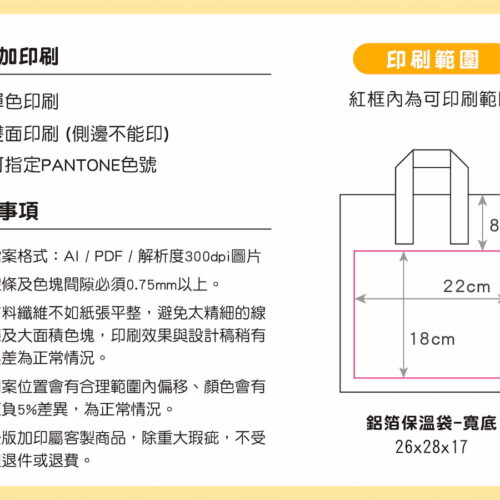 材質 : 鋁箔保溫袋80g+霧膜